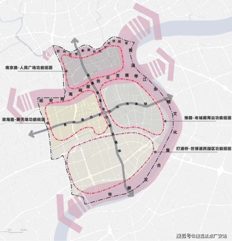 2025规划中,【豫园-老城厢周边功能组团】定位以豫园为核心,向东往南外滩拓展,向西与新天地对接,东西联动,以打造上海最具民俗特色的文化旅游区为目标,未来将成为城区中东部发展核心。
