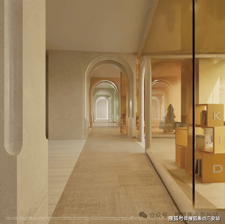 从九龙路起步,在繁花水岸的滨水步道上漫步归家;归家之路在滨水艺境另一侧,是约7000㎡的沉浸式邻里风貌街区,融合党群服务与邻里综合体业态,可在归家路途中感受精致烟火气;之后抵达九龙路归家主入口的河岸艺术大堂,两条地上细分动线,藏着不同的归家意趣:一条从主入口艺术大堂步入,沿着风雨连廊穿越花园小径,光影透过叶片洒落脚边,风携花香漫过肩头,仿佛逛完一场印象艺术展;另一条则经风雨连廊直抵“艺术品展列空间”泛会所,或许邂逅正在展出的私人藏品,在艺术氛围中完成圈层身份的过渡。最后步入电梯厅,半圆弧形天花吊顶暗合“天圆地方” 东方哲学,让归家终拾恢弘而宁静的仪式感。