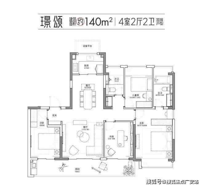 户型面积:建筑面积约134㎡三房、134㎡四房、140㎡四房、143㎡四房、