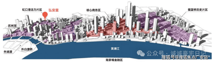 百年弘安里,世纪规划心。弘安里地处约840万方北外滩卓越城市规划与“一江一河”世界级规划的交汇点,势能叠加突破想象。