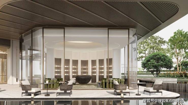 四大水景体系:前庭水院(江南四水归堂)、中央主水景、层次水景与天幕泳池,实现"风雨无阻的诗意生活"