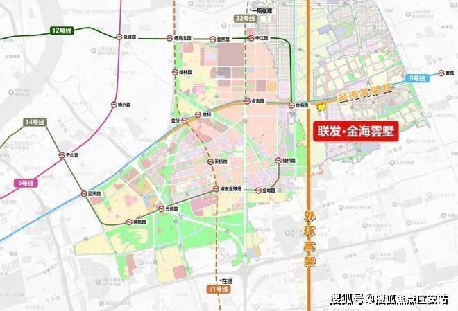 轨交层面,项目位于9/12号线金海路—顾唐路之间,直线距离金海路站约600米;14号线桂桥路站约2公里。