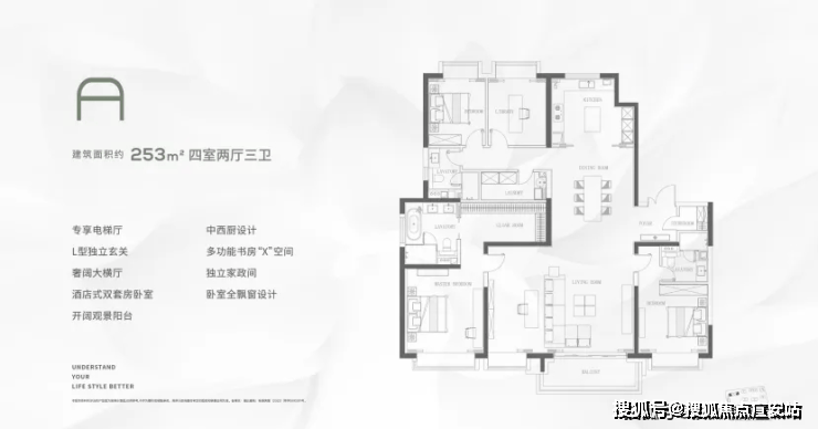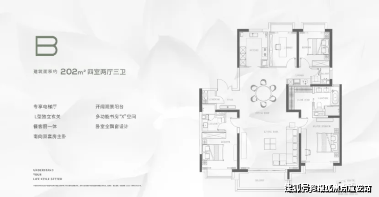 与市面上的多数高层住宅相比,「缦云上海」 四叶草式户型布局,不仅户型均好性更强,更有利于空间独立和私密性,其空间尺度感与功能细节也是做到极致.