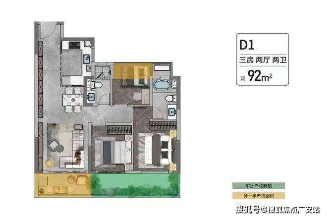 在寸土寸金的城市之中,户型使用率是决定居者生活舒适度的关键。92㎡户型以近100%的使用率,获得了昆山一众购房者的青睐。
