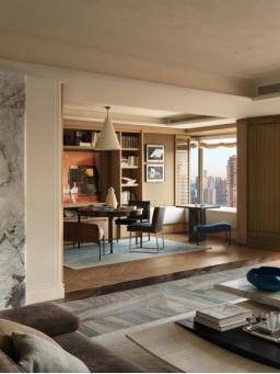 临窗区域刻意保留通透感,大幅落地窗如画框般框取城市景致。宽厚的皮革矮榻沿窗延伸,阅读、聚会或放空时,都能与城市的昼夜相伴。