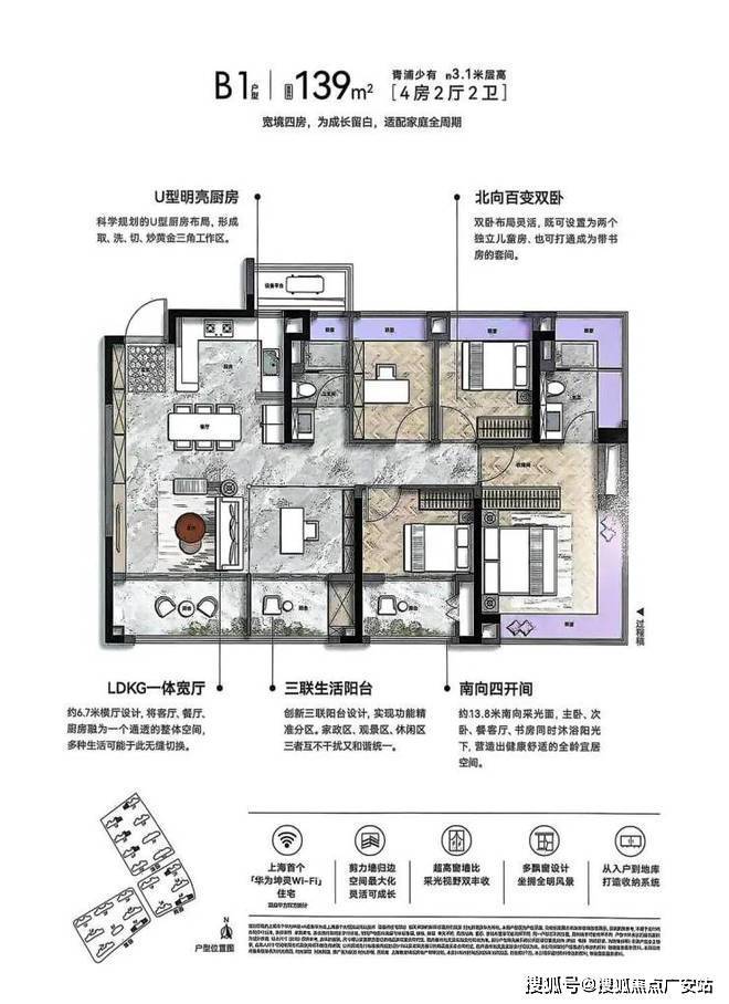 项目全屋标配华为全屋智能+方太厨电等一线品牌,其中很多亮点都是区域首发,创新设计 “一站式化妆”的悦己卫浴和 “一步到位”的效率厨房