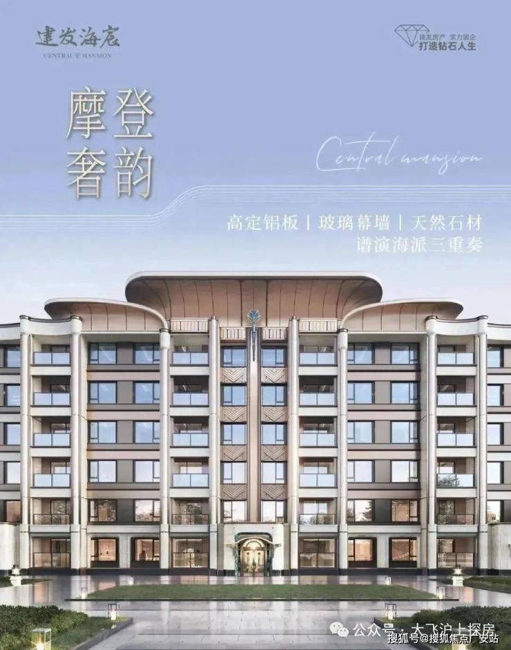 建发「宸系」中式作品,铝板与玻璃幕墙外立面,配园林景观。约1150套房源高低配,限高40米,含小高层、洋房、叠墅产品,满足刚需与改善需求。