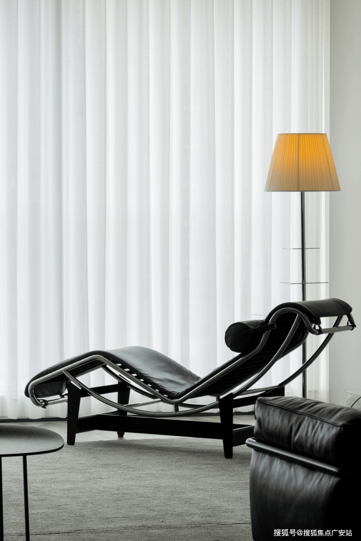 落地窗旁,黑色躺椅悠然摆放,仿佛午后专属宝座,阳光洒满全身,惬意无比。