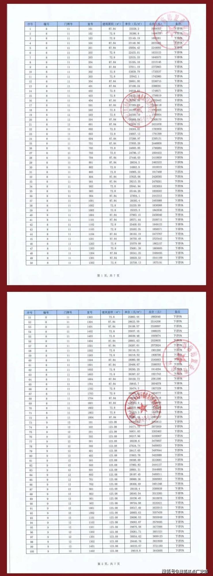 项目一房一价表