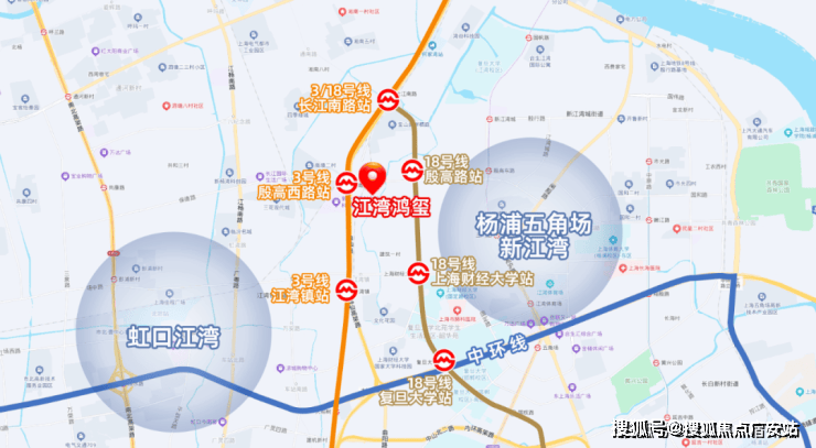 江湾鸿玺地处江湾西大门,位于四区交汇处,地理位置优越。东有新江湾城,南有上海市四大城市副中心——五角场。