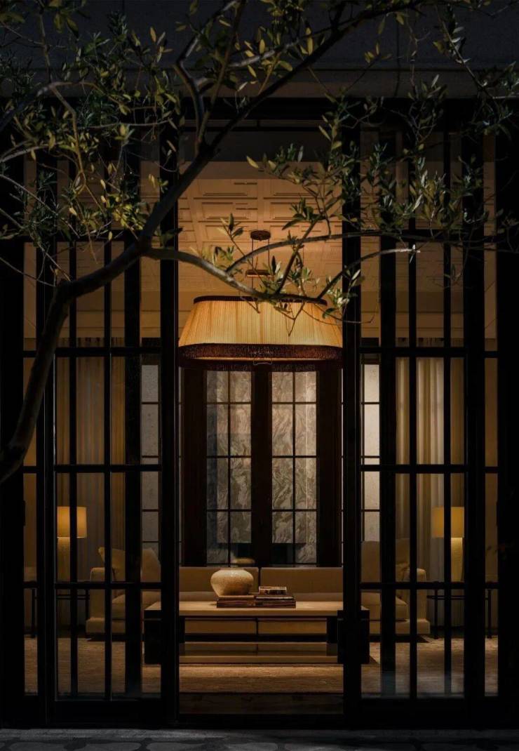 契合中国传统院落居住哲学理念,以“外紧内松”空间设计手法,对风貌别墅空间尺度进行当代拓新,让空间服务于生活。外紧-通过外部百年巷道肌理活化、建筑错落排布景筑交融,打造美而精的体验;内松-宅院内以多重庭院、立体花园、大落地窗等实现室内尺度拓新,给家人更多停留空间、打造建筑会呼吸的松弛感。