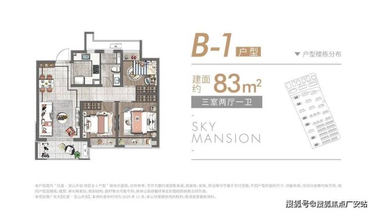 除了建面约89㎡的洋房,建面约83-89㎡高层户型也各有所长,均是三房设计,无论是从结构布局,还是空间利用皆相得益彰,承载一家人的美好生活。高层户型如下: