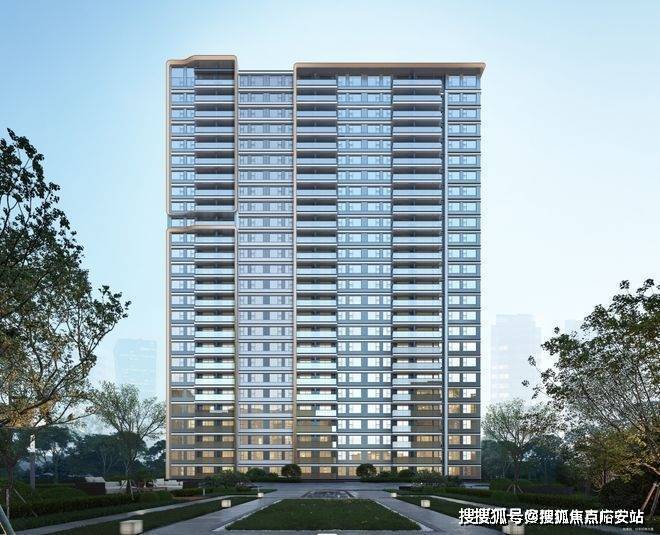 上香槟金型材金石嵌套设计,这一配色使建筑立面变得更加柔和,代表温和尊贵的价值取向。