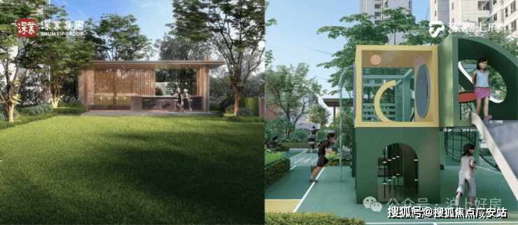 宝妈带娃有儿童活动区,滑滑梯、大草坪一应俱全!