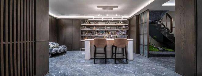 地库入户大堂公区打造,招商臻境同样也极尽匠心,吊顶上采用了具有海派风格的内凹式弧面造型;廊柱腰线以及门边运用奢石点缀,柱子与柱体采用精致的弧形倒角设计,庄重而不失典雅。