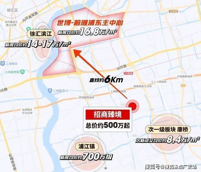 而以前滩、世博为中心,画三个直线约5-7km的生活圈,招商臻境是唯一一个约500万起的新房,而其他的选择,总价起码千万起。
