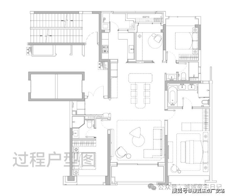 主卧配置步入式衣帽空间、双台盆+大浴缸主卫。