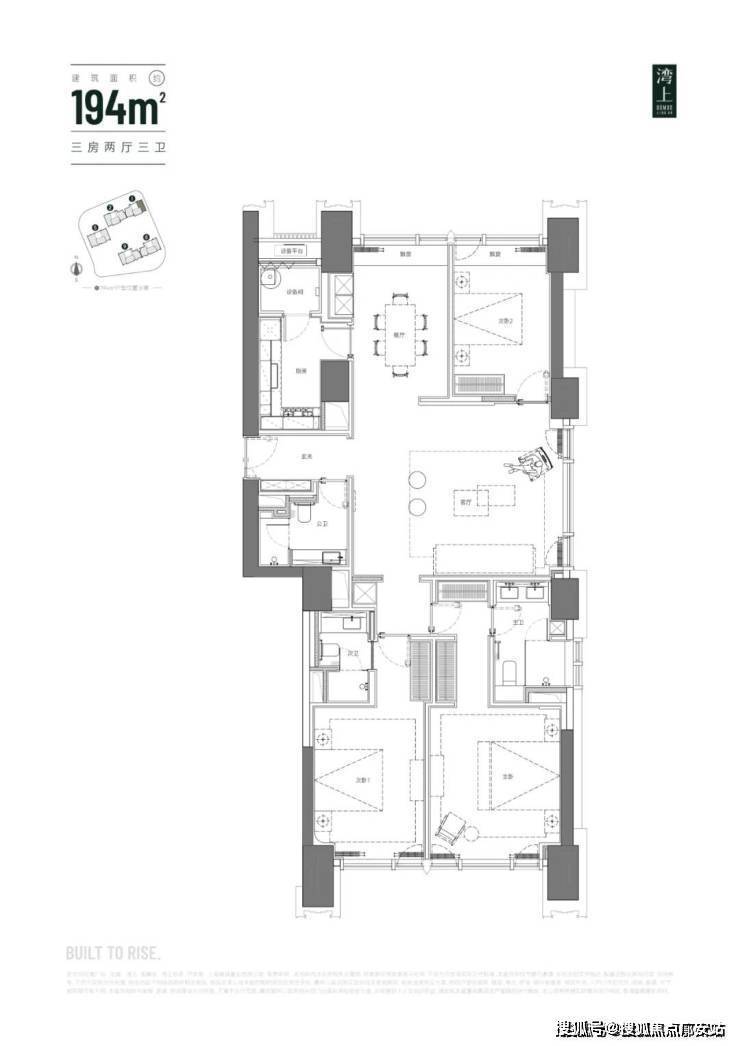 主推建面约150-256㎡纯粹大平层,三梯三户,层高3.3米,空间开阔大气。