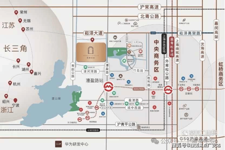 周边五横三纵路网,三线轨交环绕(17号线、示范区线、嘉青松金线)