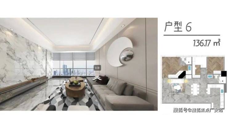 With a 50-year commercial office property type, construction area ranging from 73 to 170 square meters, price from 5.5 to 13 million RMB, delivery standard includes soft furnishings and central air conditioning, 23 floors in total, ceiling height of 3.3 meters, elevator to household ratio of 5 elevators to 11 households, space utilization rate of 76%-90%, featuring square and practical layouts with panoramic floor-to-ceiling windows.