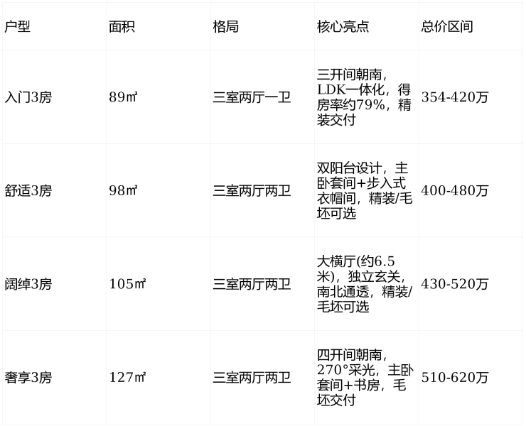 建面约89-127㎡3房户型
