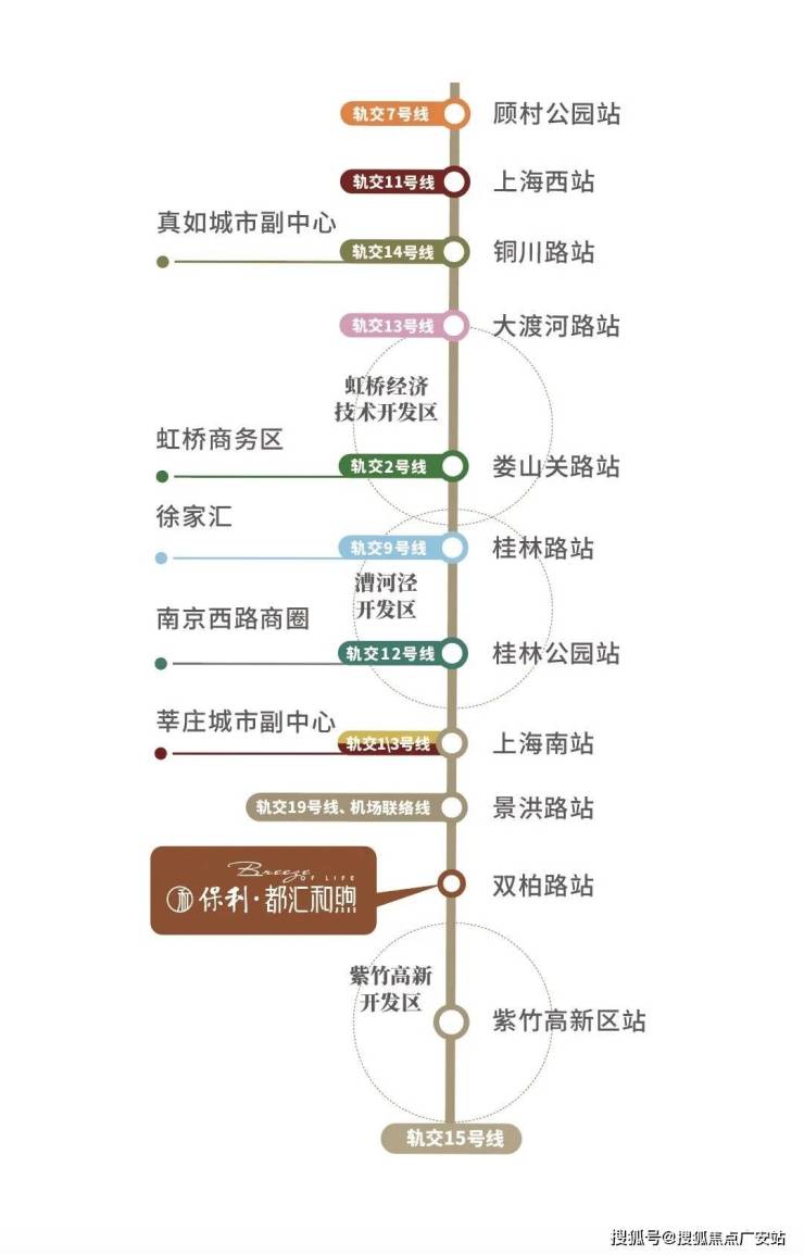 3站紫竹、4站徐汇,可换乘1号线通往徐家汇、新天地;未来19号线建成后,在景洪路站换乘可4站前滩、6站后滩,直达陆家嘴等CAZ核心。