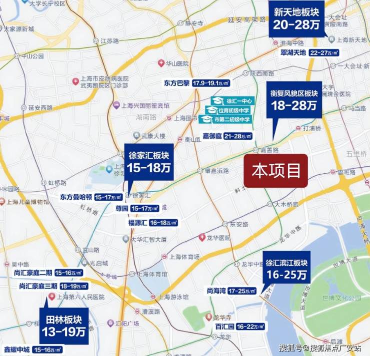 项目位于徐汇区建国西路板块,一边是老卢湾新黄浦,过了淮海路就是老静安。