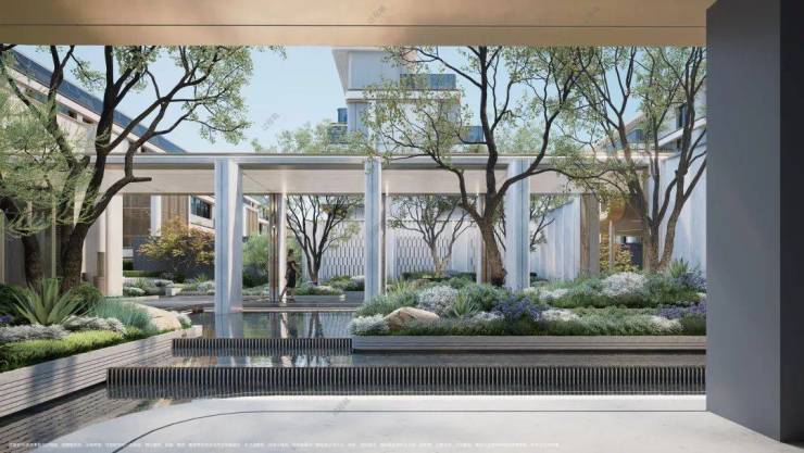 园林景观:“一轴两环三园”,约5000㎡中央景观、水幕瀑布、下沉庭院,全龄活动区、宠物区、健身区