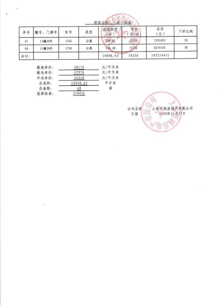 备案均价:54026元/㎡(一房一价),高层均价约5.4-5.7万/㎡,叠墅约6.5-7万/㎡