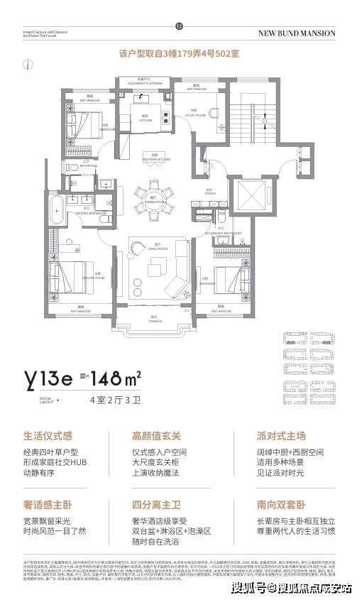 此前热销的大尺度四房“谢幕返场”。最后一批约139-149㎡改善4房,采用经典四叶草设计,针对舒适设计的大尺度面宽、双套房、全飘窗等,为多孩或三代同堂家庭提供了“一步到位”的改善方案,经典念念不忘,必有回响。