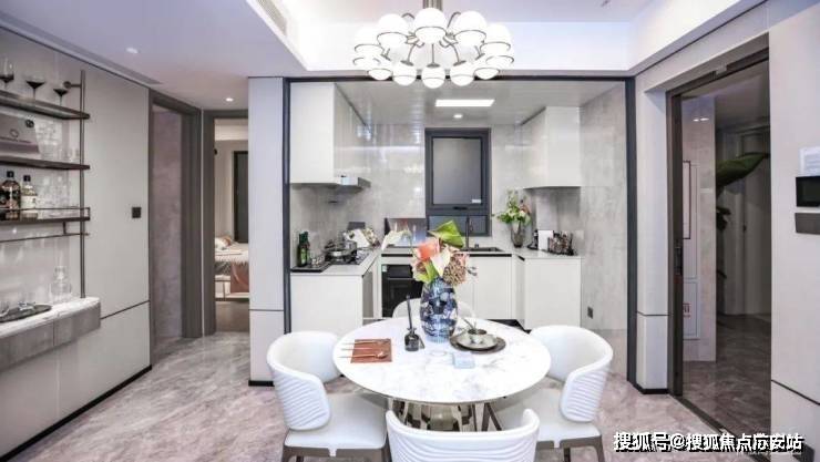 得益于飞机户型,项目室内无过道,几无浪费面积,餐厅位置能从容放置圆桌,妥妥改善级尺度的餐厅。