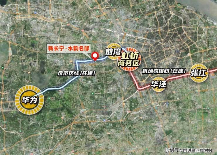 若从更大视角看,新长宁·水韵名邸甚至更把华为、徐汇华之门、张江纳入了自己的通勤版图。