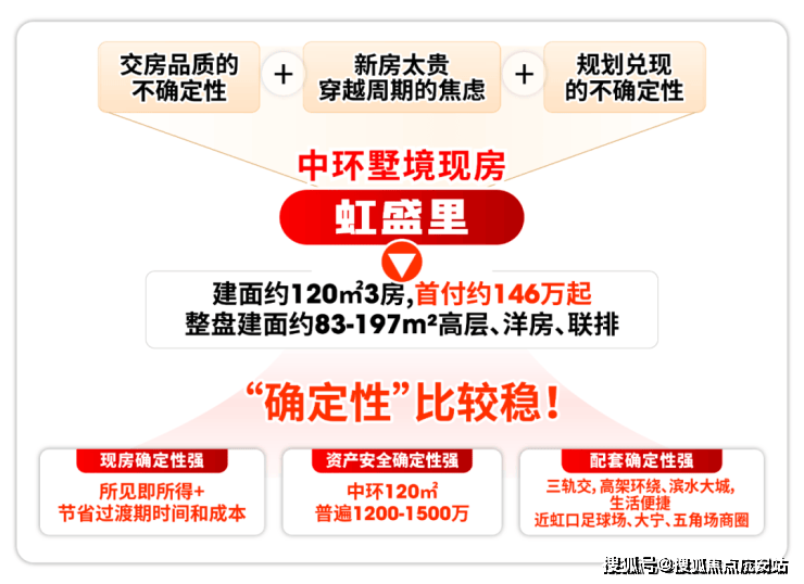 虹口虹盛里 ,便是当下“确定性”尤为靠谱的选择—— 当下首付最低15%,首付仅约146万起 就能在中环旁入手建面约120㎡的3房墅境现房!