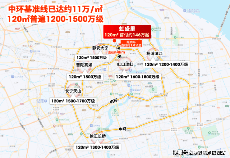 即便与同区域相比,优势同样突出——直线距离仅4公里的虹口瑞虹板块,120㎡房源总价已达 1600-1800万级 ,虹盛里的差价接近一半,这样的性价比在市场中罕见,为资产安全筑牢基石。