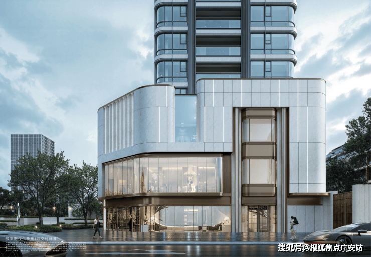 CityCore:这三层商业是城市标志节点,外立面大面运用了弧面铝板和玻璃幕墙,高大的柱式门头营造第一眼的庄重感,是打破传统、时尚新锐的新街道,未来这里将成为地标级符号。