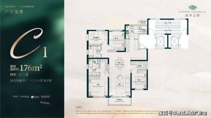 建面约176㎡4房2厅2卫户型▼