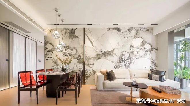 打破客厅、餐厨区物理隔断,以流畅动线串联,消除空间割裂感,让视觉与活动范围双向延伸,小空间显大,大空间更通透。利用地面拼花、顶面暗藏风口的连贯设计,弱化功能区边界,借材质、造型过渡实现“无形扩容”,空间层次更融合。拱门、开放柜体(如大理石餐边柜 )引入相邻空间光线与景致,延伸视觉深度,让客厅借餐厨采光,餐厨借客厅视野,双向放大空间感。客厅收纳、餐厨操作区与社交区结合,减少单一功能对空间的占用,让区域“一专多能”,变相提升空间利用率,达成扩容效果。