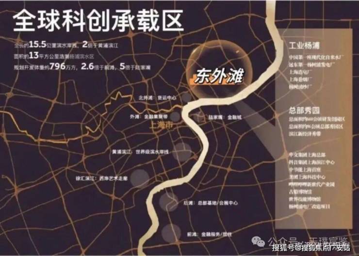 根据上海“十四五”规划,杨浦滨江被定位为全球卓越城市会客厅,承载世界级科创中心使命。区域规划开发体量约796万平方米,是黄浦滨江的2.6倍和陆家嘴的5倍,全长15.5公里岸线提供近7.46平方公里土地用于旧改与工业遗存转化。