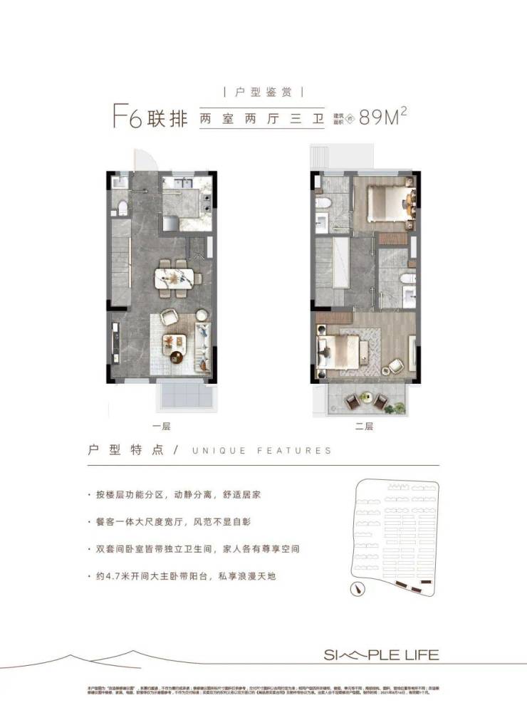 项目合计47幢楼,其中洋房12幢554套,联排33幢301套,项目整体分两批次推出,总计855套。采用人车分流,即保证社区整体设计的美观,又保证业主的安全性,车位有920个,做到1:1的比例。