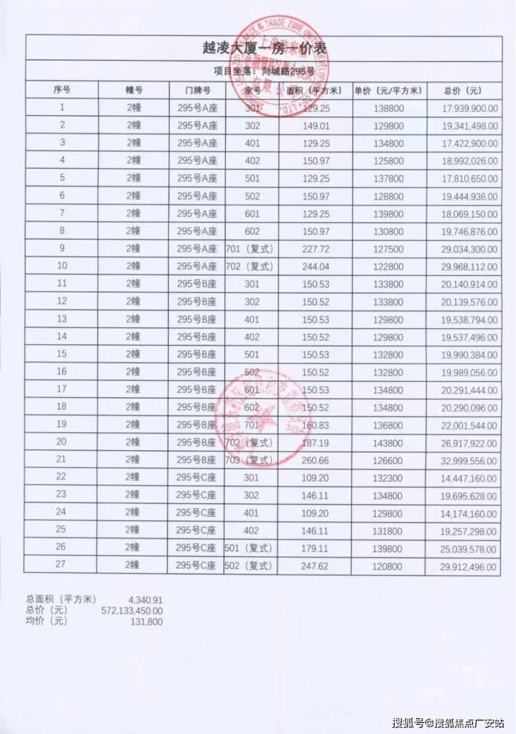 一房一价表
