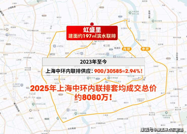建面约197㎡滨水联排堪称中环稀缺藏品——2023年至今,中环内联排供应占比 不足3% ,套均成交总价高达约 8080万 (包含风貌)。 虹盛里的联排不仅填补了区域市场空白,总价更具亲和力。