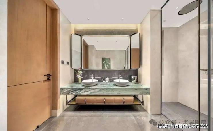 一层主要作为会客功能。样板间将一楼书房空间打开,与餐厨空间相连,更显空间感。还贴心设计了一个父母房,方便老人起居。