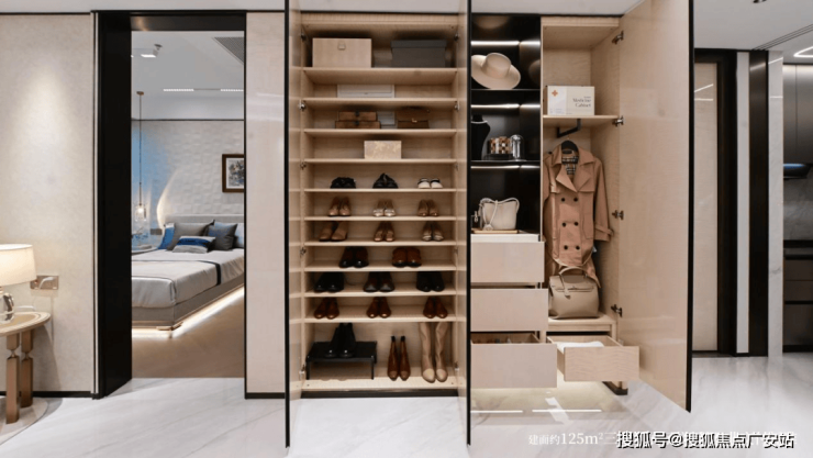 全屋海量收纳堪称"空间魔术",标配多功能餐边柜、定制橱柜、双面镜镜柜等多重收纳系统,相当于拓展出一间卧室容量,让家越住越大,让生活井然有序。