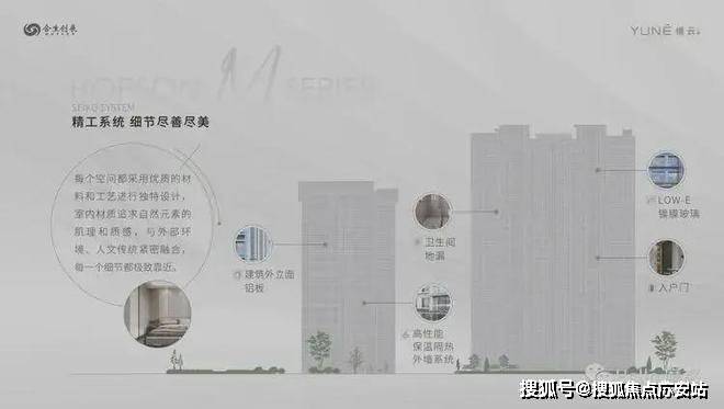 上海杨浦缦云上海售楼处电话:400-969-2958现代典雅立面,灰色搭配香槟金的色调,彰显不同建筑审美,外立面为品质铝板+玻璃幕墙,局部干挂石材和保温一体板,通过数控切割、精度弯弧、手工焊接、打磨抛光、七重清洁、烘干喷漆、高温定型等过十余步精细工艺,是高端住宅中品质最高的立面铝材。