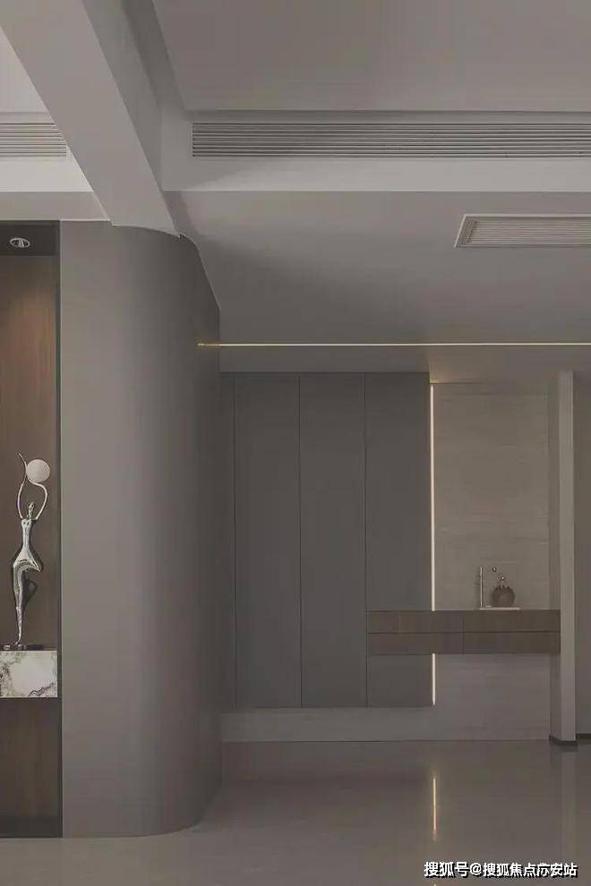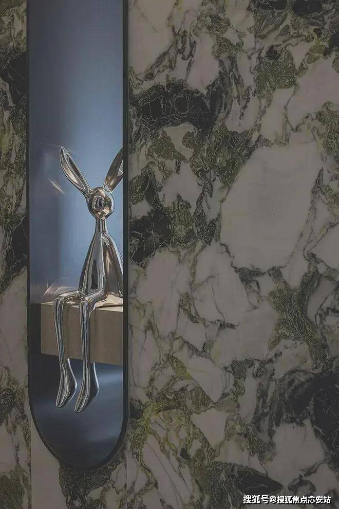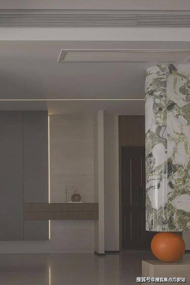 入户玄关,应用了翡翠绿岩板热弯工艺,低奢材质的选择,打造时尚优雅的宜居之境,使空间散发浪漫气息,成为空间的点睛之笔。