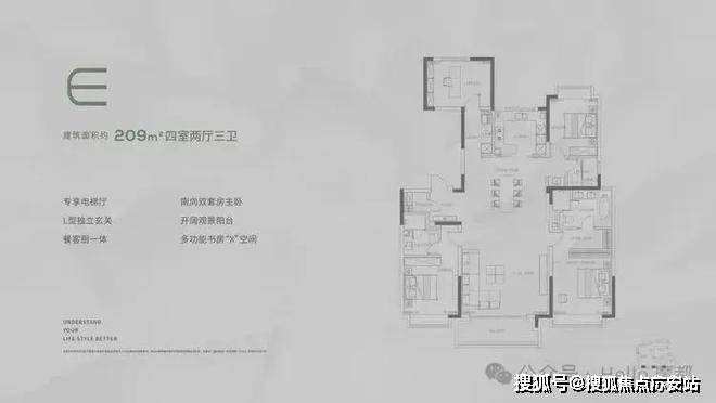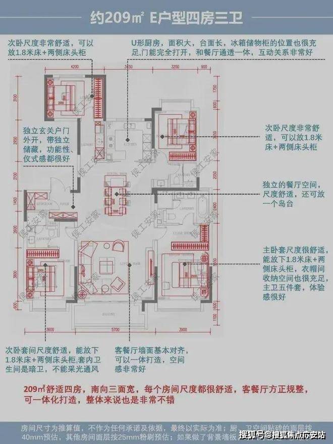 综合评价:209㎡舒适四房,南向三面宽,每个房间尺度都很舒适,客餐厅方正规整,可一体化打造,整体来说也是非常不错