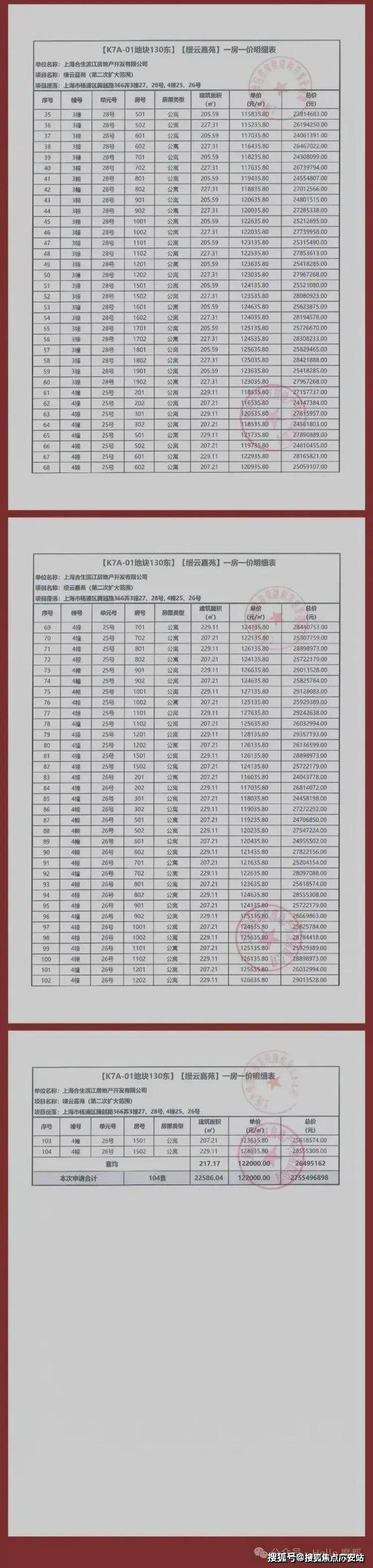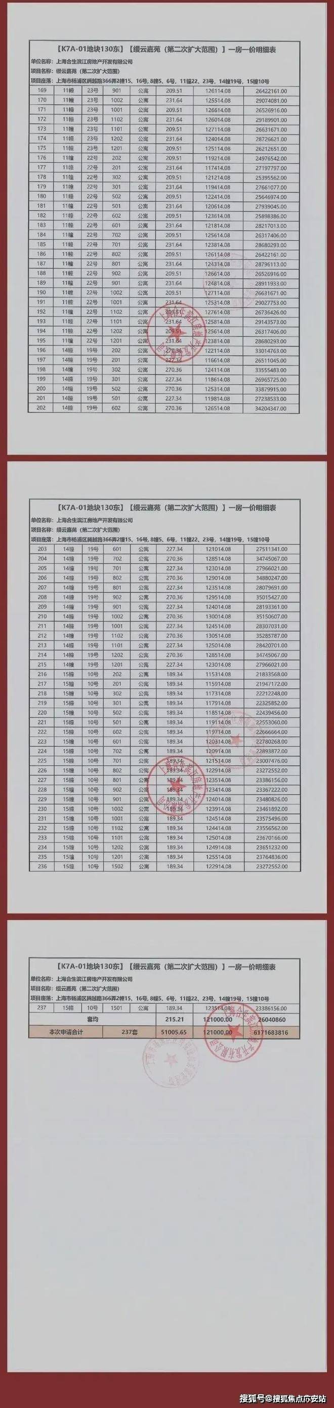 缦云上海三期共推出5栋楼,房源合计237套,其中:
