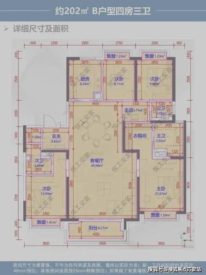 综合评价:与B户型格局基本一致,各房间尺度略有差异
