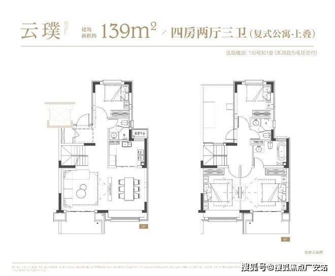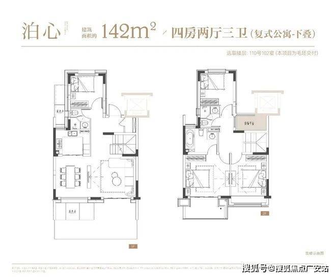 项目叠墅户型有建面约142㎡下叠,建面约139㎡上叠。