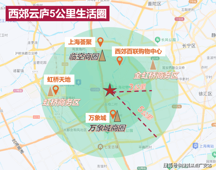 在西郊云庐的黄金5公里范围内,涵盖虹桥商务区、金虹桥商务区等大型办公区;万象城商圈、临空商圈等逛吃游乐社交商圈;串联西郊百联、虹桥天地、万象城、荟聚等核心购物中心。